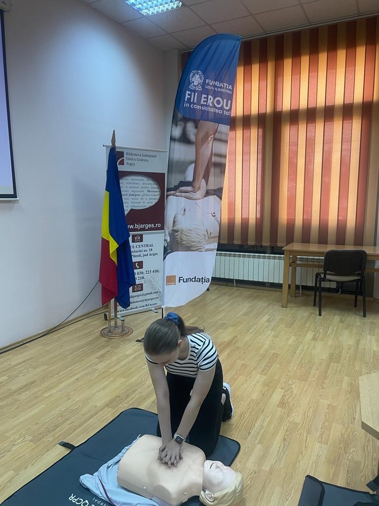 Sâmbătă de sâmbătă, adolescenți și tineri au pășit timizi în Sala de conferințe a Bibliotecii Județene ”Dinicu Golescu” Argeș. Pasiunea pentru medicină sau dorința de a fi de ajutor oamenilor în momente de vulnerabilitate i-a adus pe liceenii din județul Argeș la cursurile de prim ajutor organizate cu scopul de a crește nivelul de cunoștințe și competențe de acordare a primului ajutor în situații de urgență medicală și a veni în sprijinul Serviciilor Județene de Ambulanță suprasolicitate. Într-un joc de cunoaștere inițial, fiecare participant ne-a împărtășit motivația de a participa la un curs exhaustiv de acordare a primului ajutor de bază - de la aspirații către o carieră în medicină la incidente sau chiar tragedii cu care s-au confruntat.